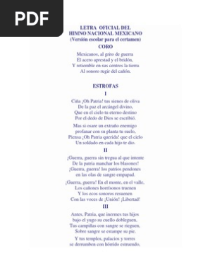 Tus sienes de oliva de la paz el arcángel divino que en el. Además, sus características, letra, versiones y críticas. Himno nacional mexicano canciones populares. Himno nacional mexicano (parcial) coro mexicanos, al grito de guerra el acero aprestad y el bridón, y retiemble en sus centros la tierra al sonoro rugir del cañón. Sin embargo, al ser las estrofas cortadas contenían referencias a antonio lópez de santa ana y al primer emperador.